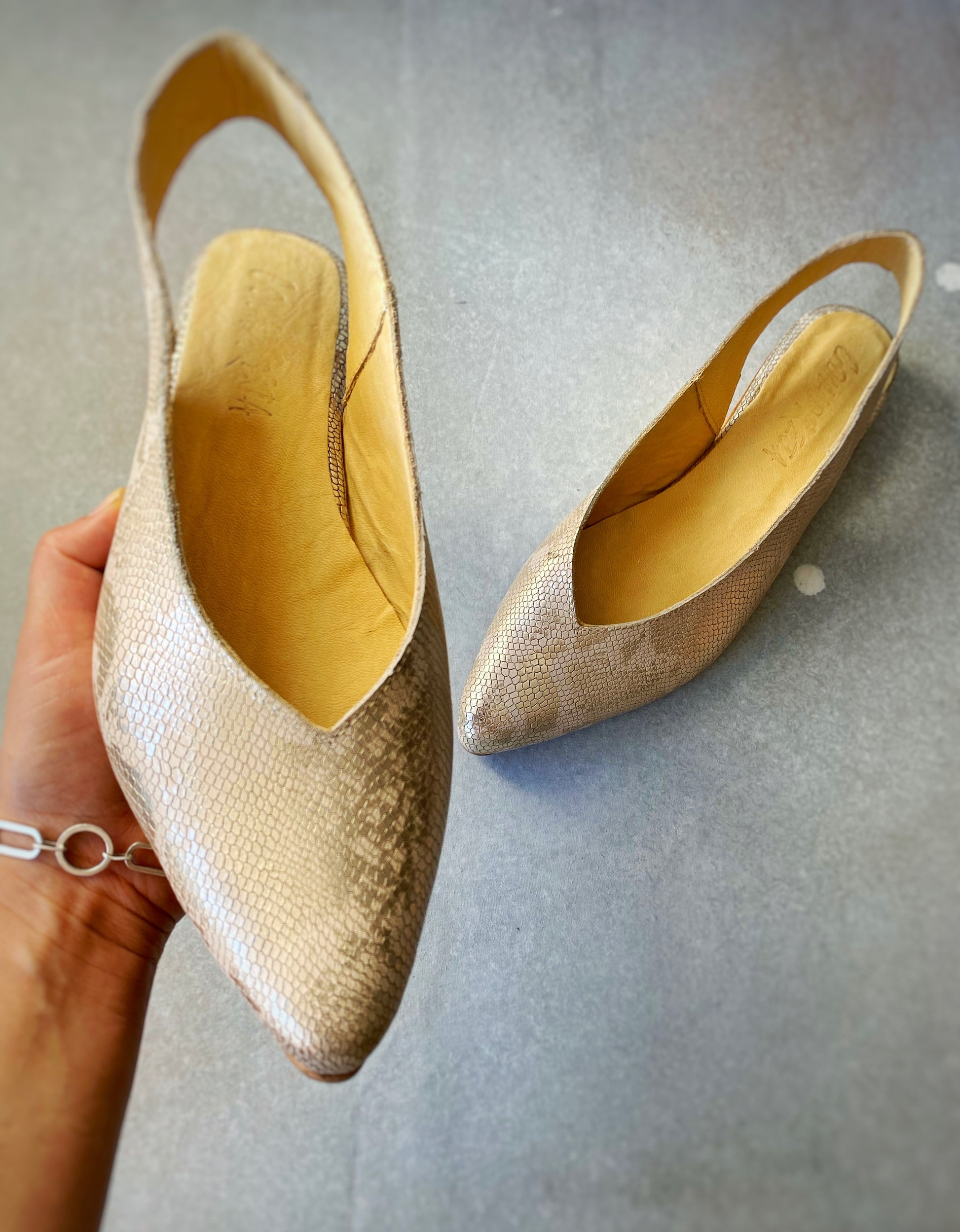 Zapatos 100% cuero, el taco mide 3 cm aprox.