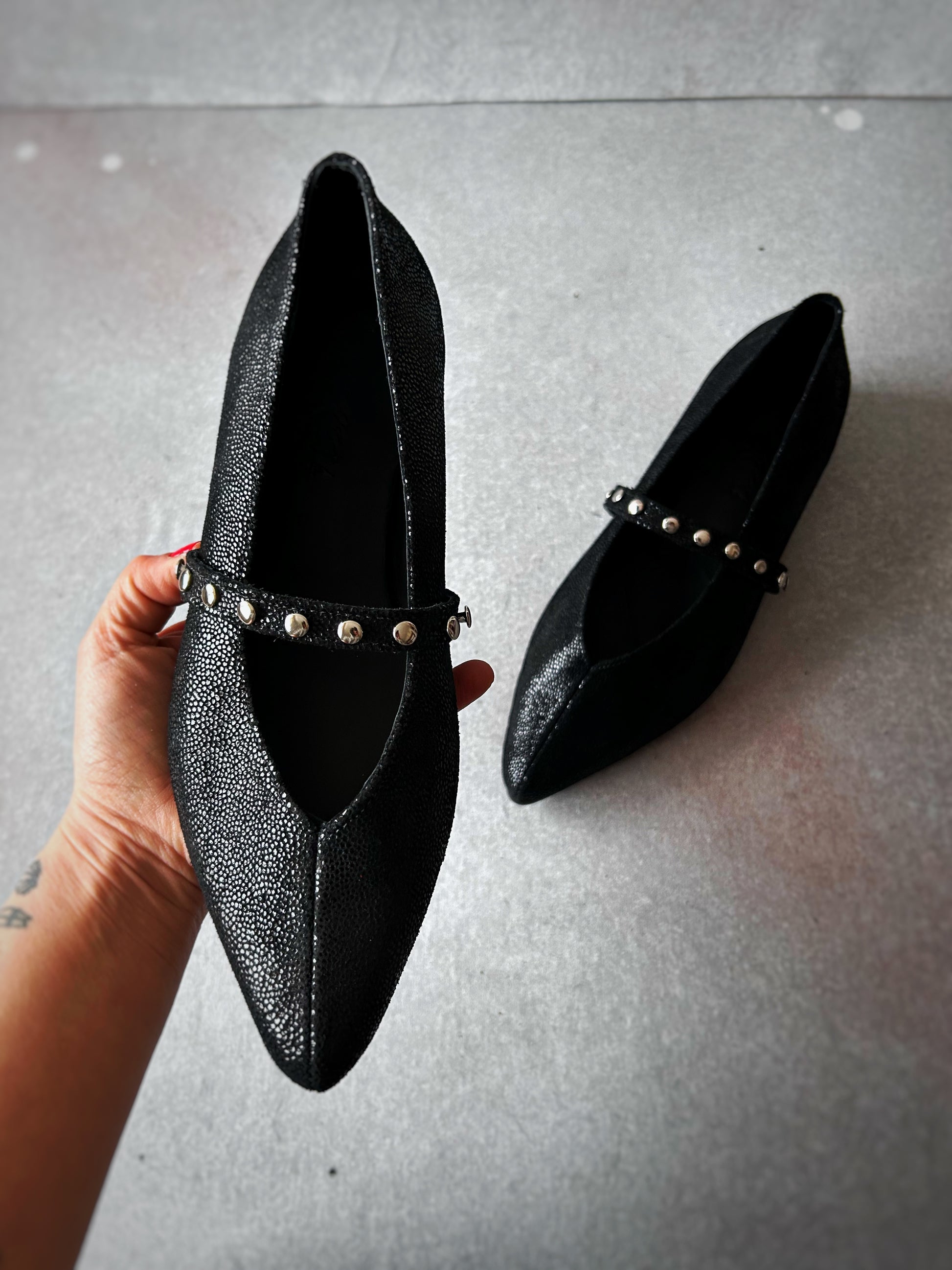 Flats negros con remaches plateados